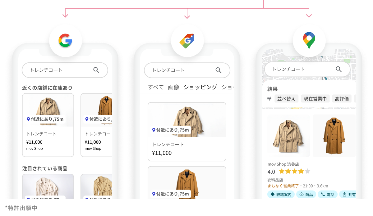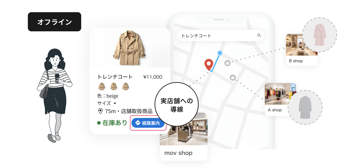ユーザーが商品を検索した際、その商品を扱う近隣店舗の在庫情報や店舗情報、ECへの購入導線をGoogleなどの検索プラットフォーム上に表示するマーケティング手法。