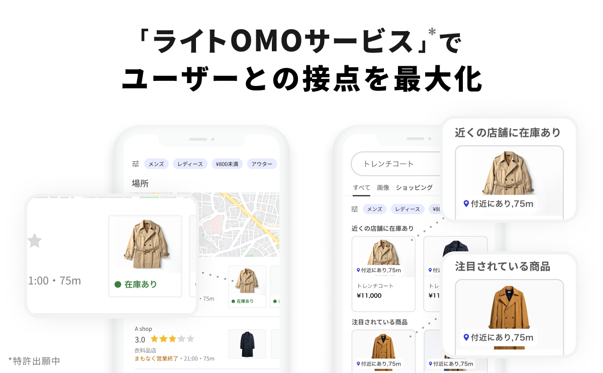 ライトOMOサービスでは、口コミコム上でGoogleマーチャントセンターやGoogleビジネスプロフィールと連携し、店舗の商品在庫情報を容易に設定、表示できる。これにより、小売事業者は店舗や商品情報を露出することでユーザーとの接点最大化を図ることができる。
