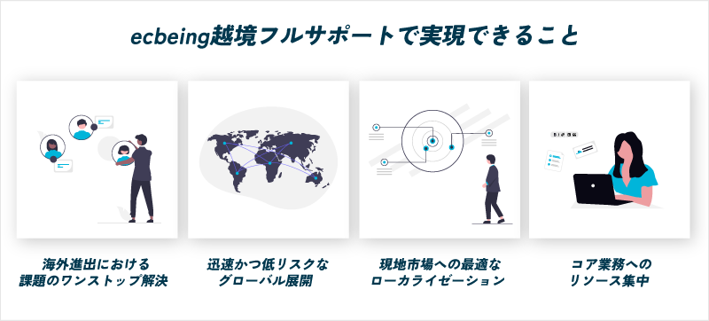 「ecbeing」を提供する株式会社ecbeing(イーシービーイング)は、企業のグローバル展開を包括的に支援する新たな越境サービス「ecbeing越境フルサポート」の提供を開始した。
