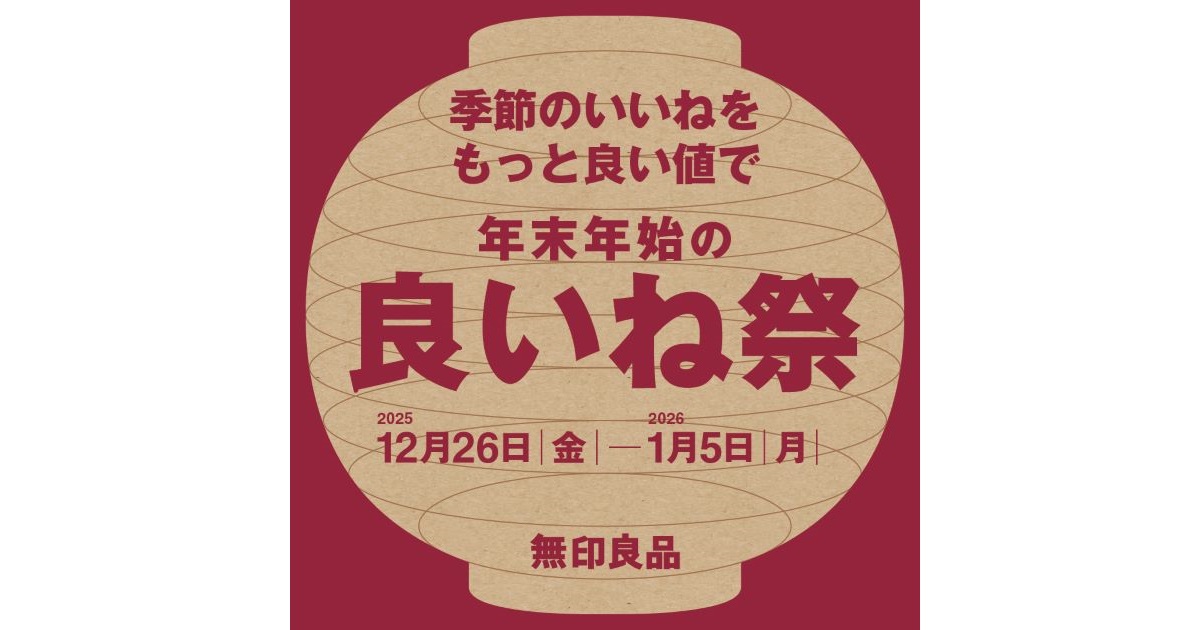 株式会社良品計画は、運営するブランド「無印良品」で2025年12月26日から2026年1月5日の期間限定で、季節のおすすめ商品を特別価格でお届けする「良いね祭(いいねまつり)」を開催すると発表した。
