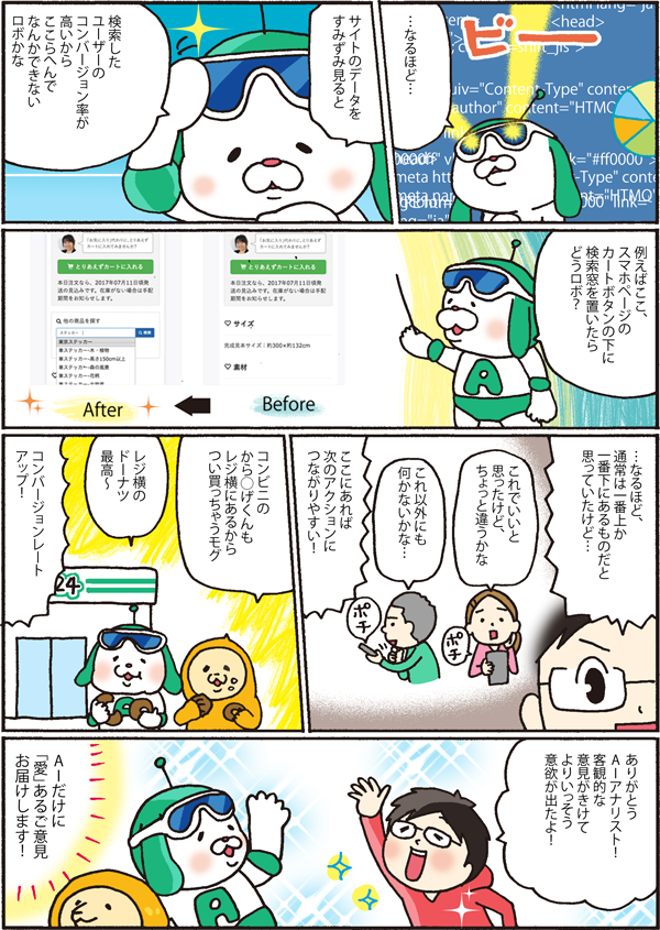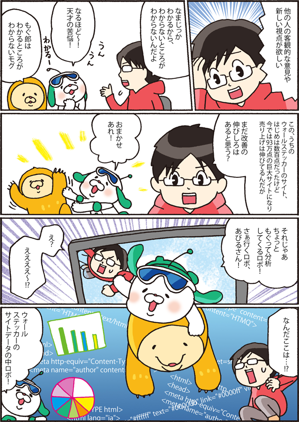 「くんくん、苦悩のニオイがするよ~!」。ウェブのプロだからこそ、なかなか他の人の意見がもらえないという悩みを抱えていた「AbiStudio.com」のあびるやすみつさん。助け舟を出したのは、アクセス解析を自動で行う人工知能「AIアナリスト」でした。
