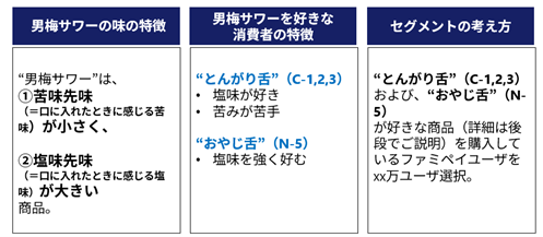 1.「サッポロ 男梅サワー」の味の特徴からセグメントを抽出。