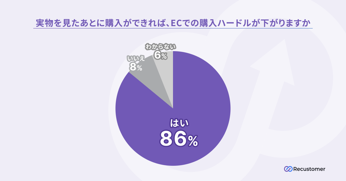 試着ニーズが高く、86%が「実物確認ができればECの購入ハードルは下がる」と回答