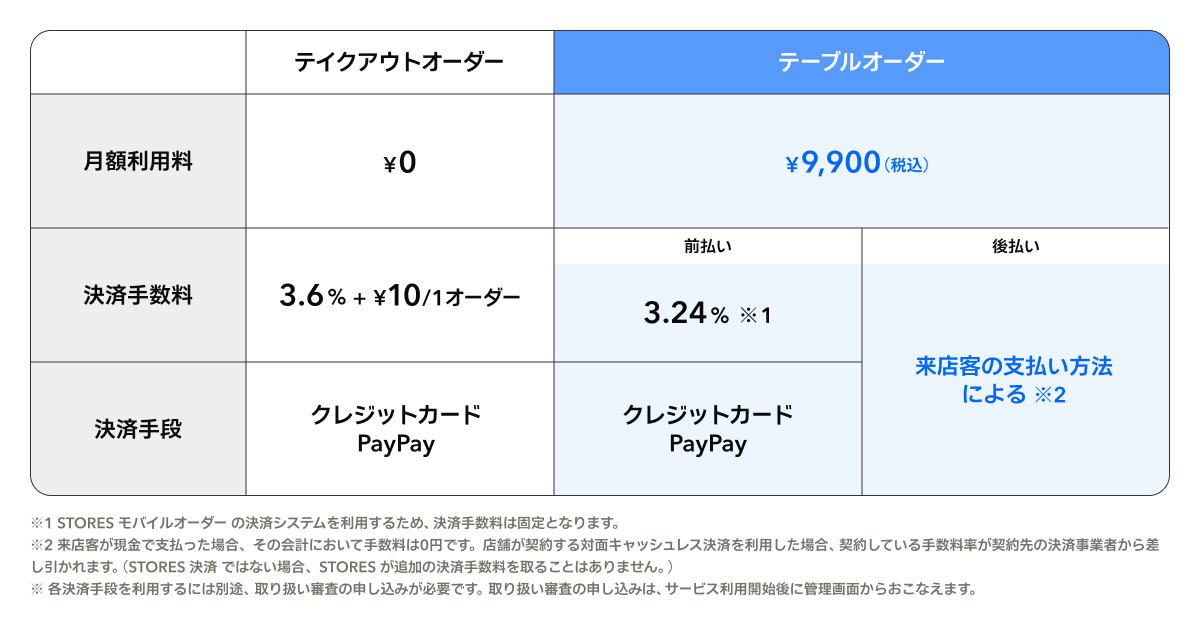 なお、従来のSTORES モバイルオーダーの「テーブルオーダー」では、1注文あたり3.6%+10円の従量課金制が採用されていたが、今回、事業規模や客席数を問わず継続的に利用可能な月額制を基本とした料金形態へと改定されている(「テイクアウトオーダー」の料金変更はなし)。