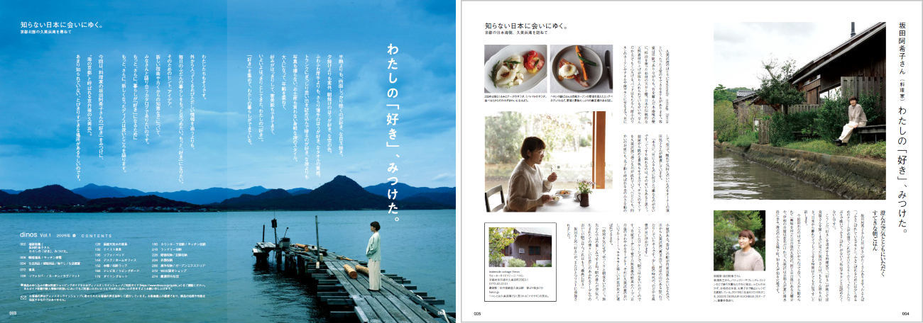 新カタログ『dinos』は、家具・収納、インテリア、寝具、雑貨など幅広い商品を掲載。従来は商品スペック中心の誌面構成だったが、今回は商品担当者の実体験や開発に対する思いなど、リアルなコメントを取り入れて商品の魅力に迫る内容となっている。また、巻頭企画を新設し、著名人や社員が自らの「好き」を語る特集を設け、生活に彩りを与える提案を強化している。