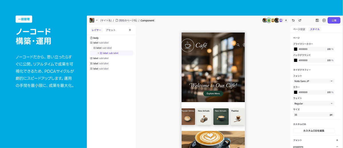 主な特徴として、ノーコードでのLINEミニアプリ構築、KPI可視化・審査管理・プレビュー確認が可能なマネジメントシステムの完備が挙げられる。また、今後はAPI連携によるマルチチャネル施策への対応も予定している。